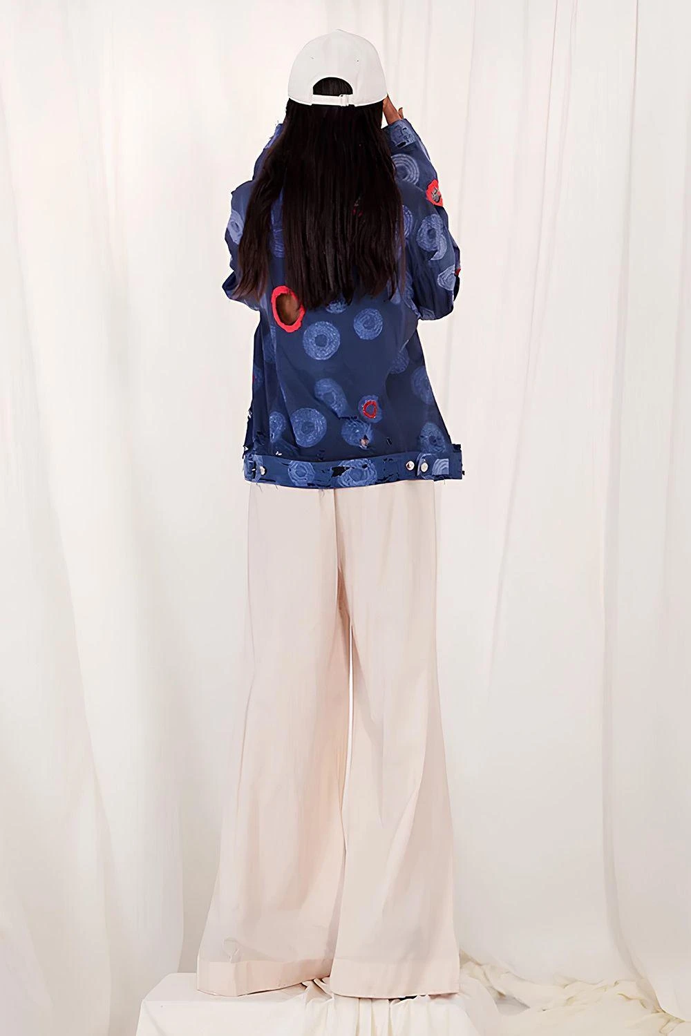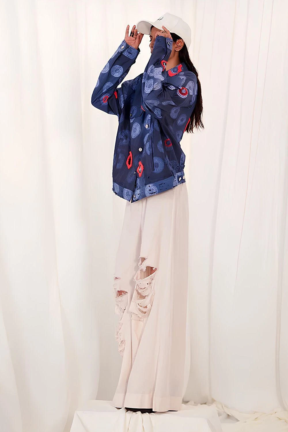 Take your layering game a notch higher with this jacket. Crafted in chiffon & silk, this jacket features shibori detailining all over. Layer it over a co-ord set from the collection to complete the look.