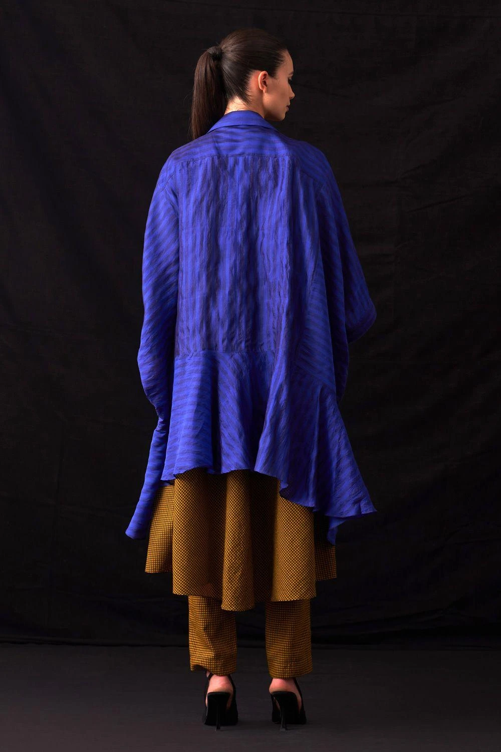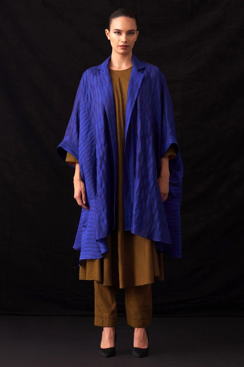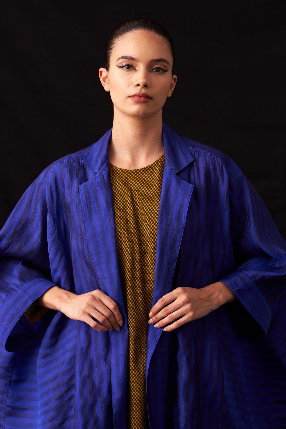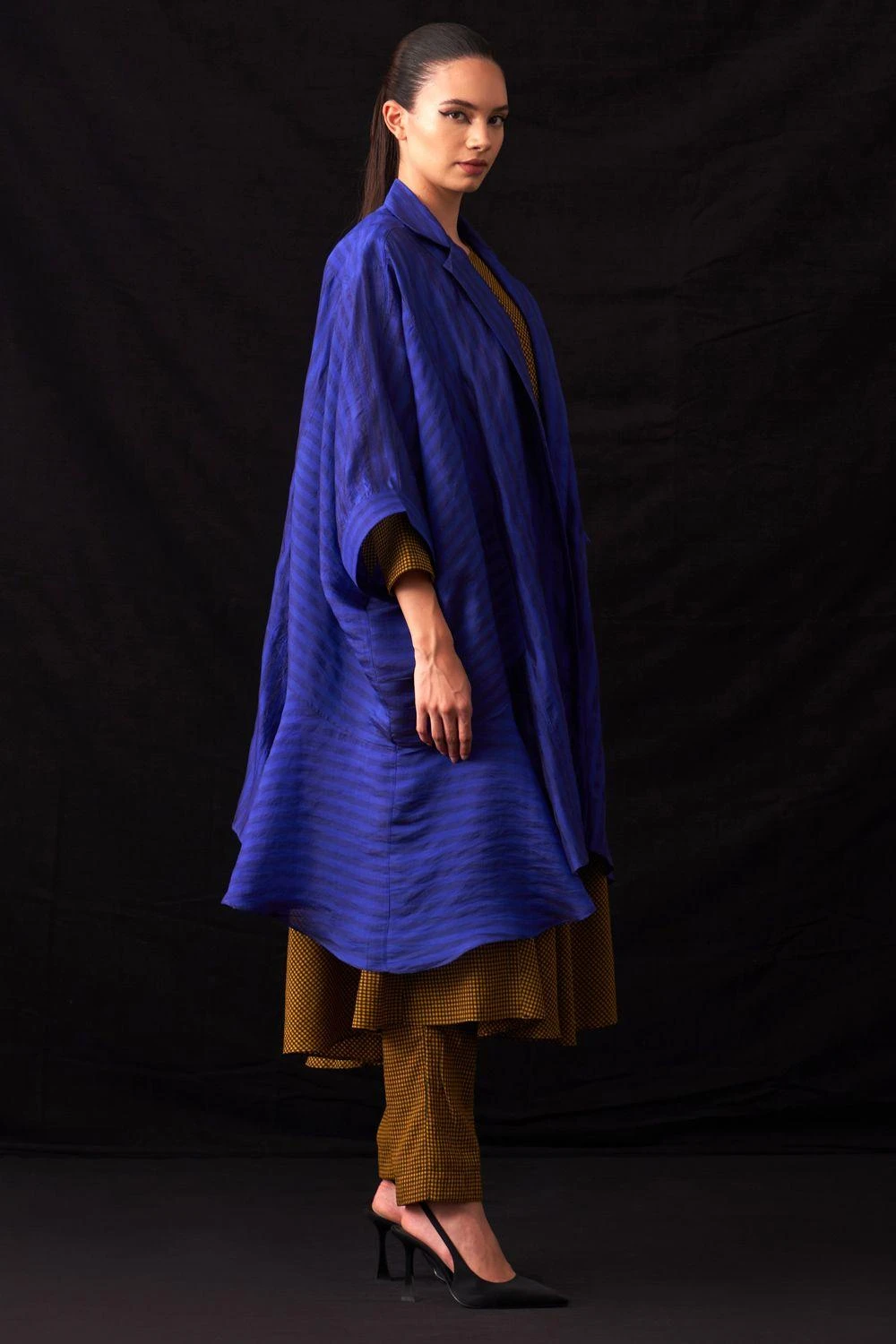 Indulge in elegance with this hand-woven stripe silk oversized unlined jacket. A statement of refined style and comfort, perfect for your wardrobe.