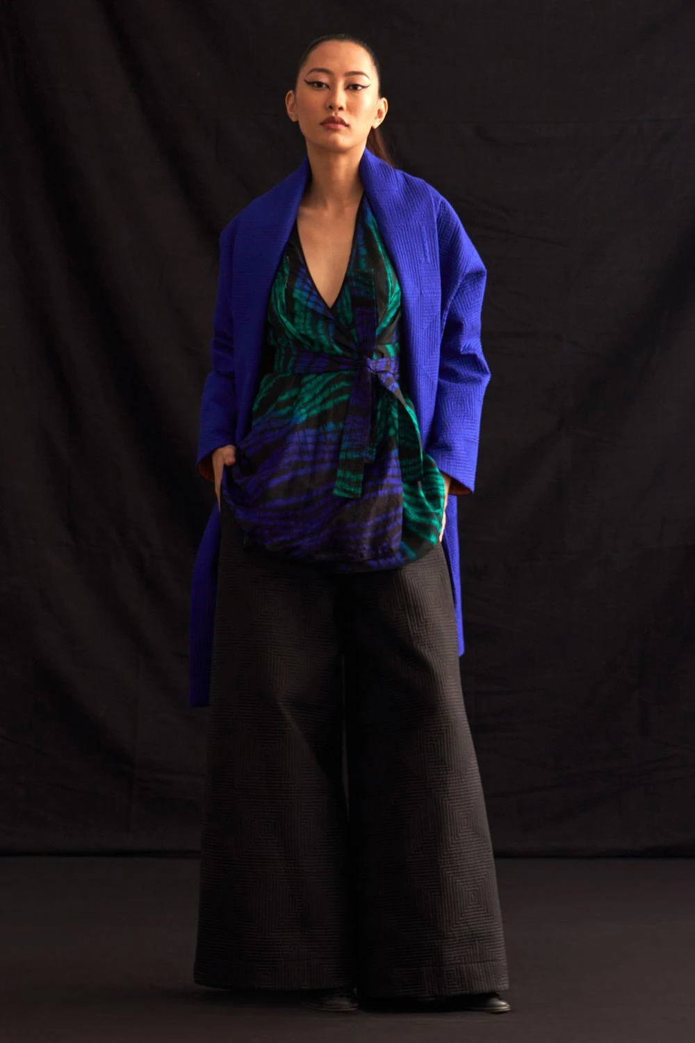 Indulge in luxury with this woven silk quilted oversized jacket, a fusion of elegance and comfort. Elevate your style with this exquisite piece of wearable art.