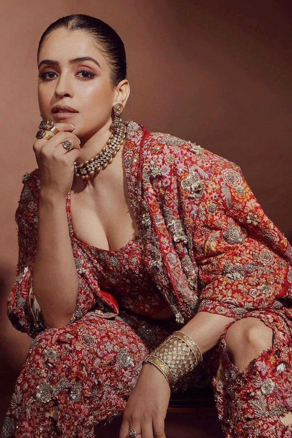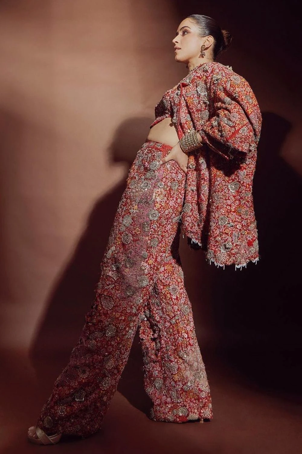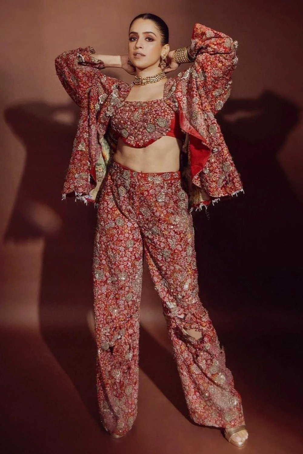 Indulge in opulence with this Red Embellished Jacket Set, a celebration of exquisite craftsmanship and timeless style. The golden hues and intricate work exude pure sophistication.