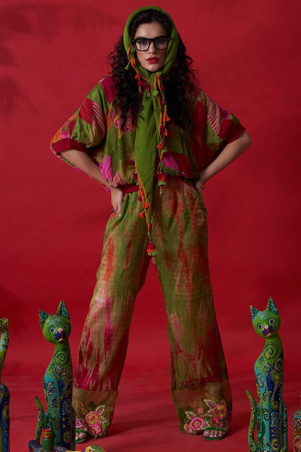Add a layer of glamour and statement style to resort getaways with this pant. Crafted in habutai silk, this pant features floral embroidered details & an organza hemline. Style it with a boho crop top to complete the look.