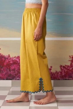 These aqua narrow pants are cut in luxe chanderi fabric and feature an organza panel on the hem. You can style this versatile piece with an array of options from your closet.