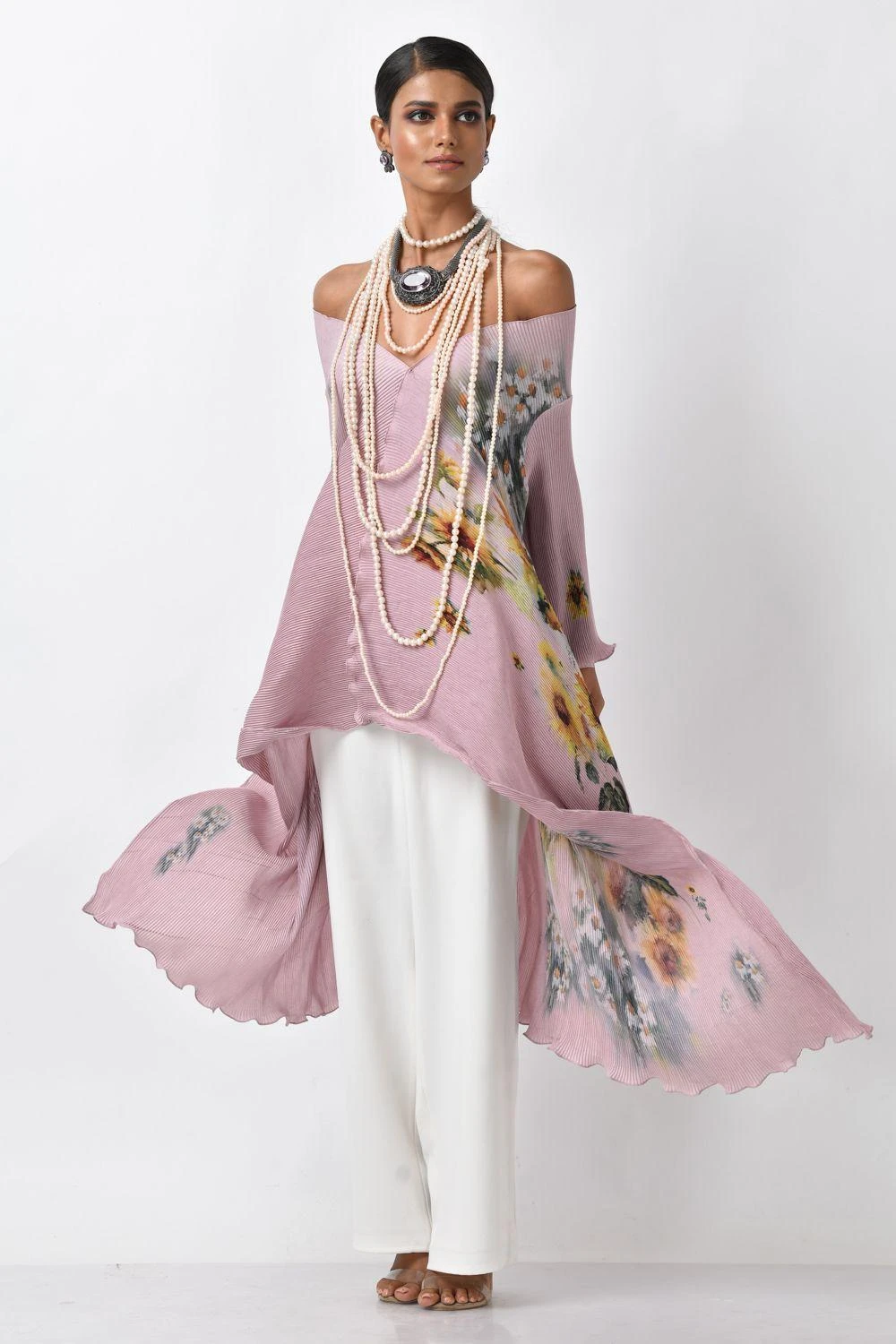 This stunning off shoulder printed wrap with sleeves is perfect for dressy events. Style it with statement earrings or with layered necklace for a timeless & sophisticated look.