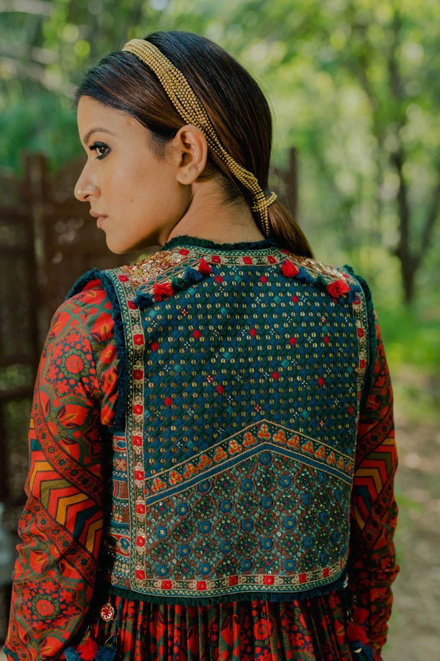 This wardrobe staple can be worn and treasured in its many guises. Meticulously crafted in silk, this short koti jacket features aari embroidered details. Layer it over a kurta set from the collection to complete the set.