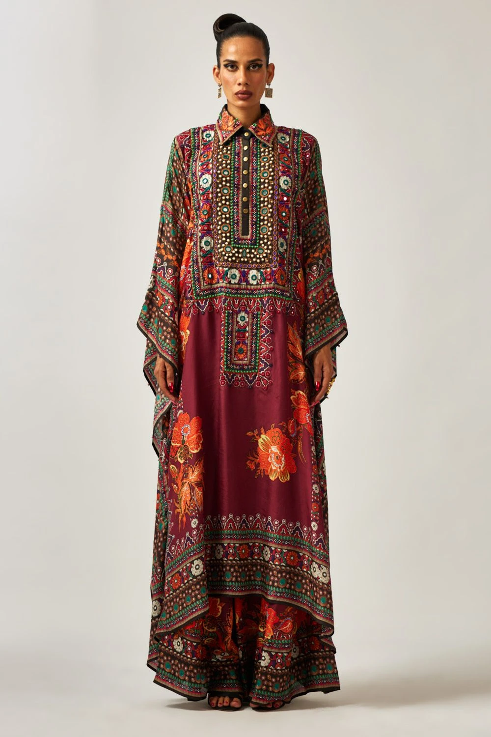 Make a statement in these black geometric print, silk palazzo pants, featuring a front belt & back elastic detail. Versatile for office or evening glam, pair it up with a tunic for work or a stylish top for outings. Effortless elegance promised!