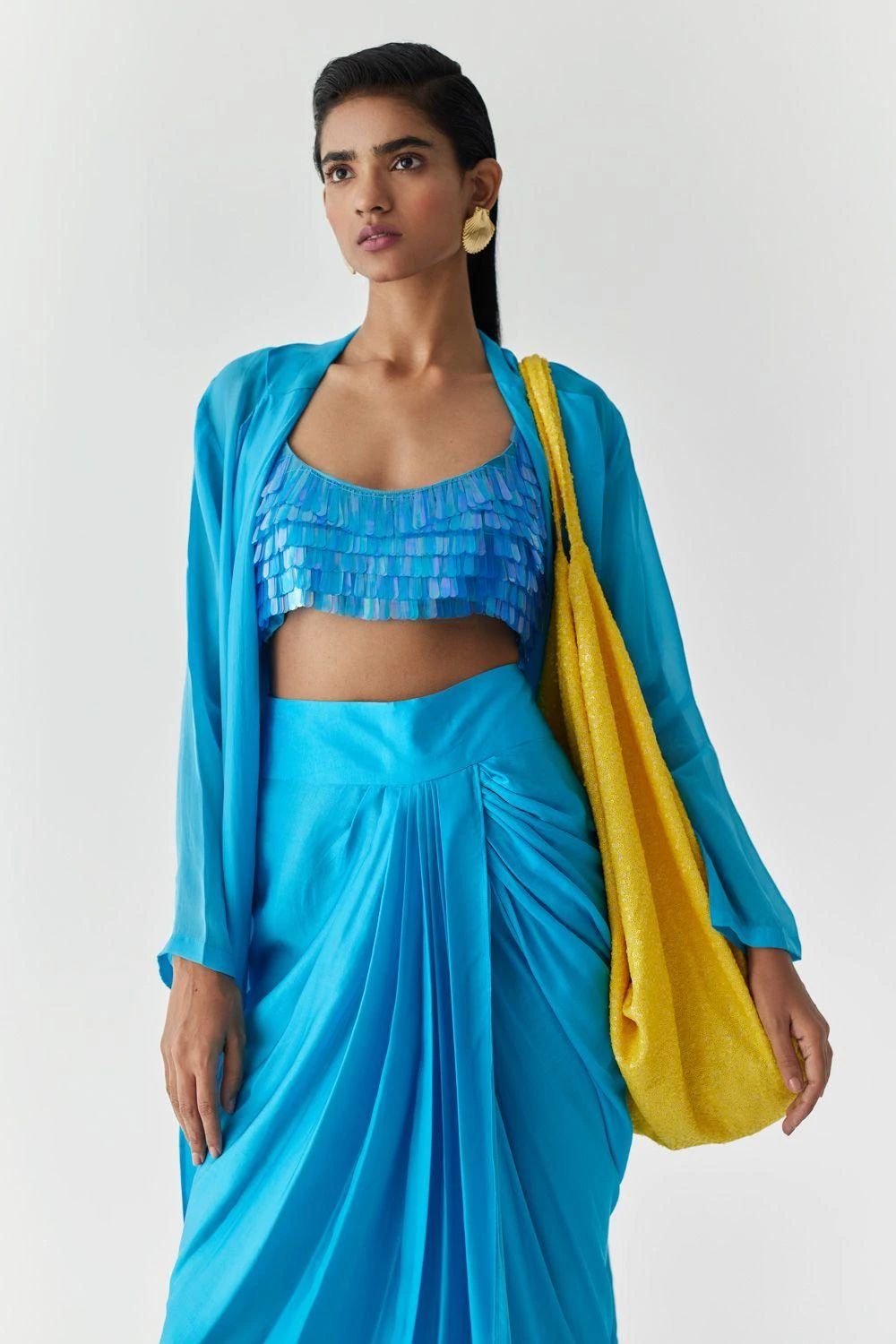 Elevate your style with the Macaw Organza Blazer, a true statement piece crafted from organza silk. With its broad lapel and translucent look, this blazer is both versatile and elegant, making it the perfect cover-up for any occasion.