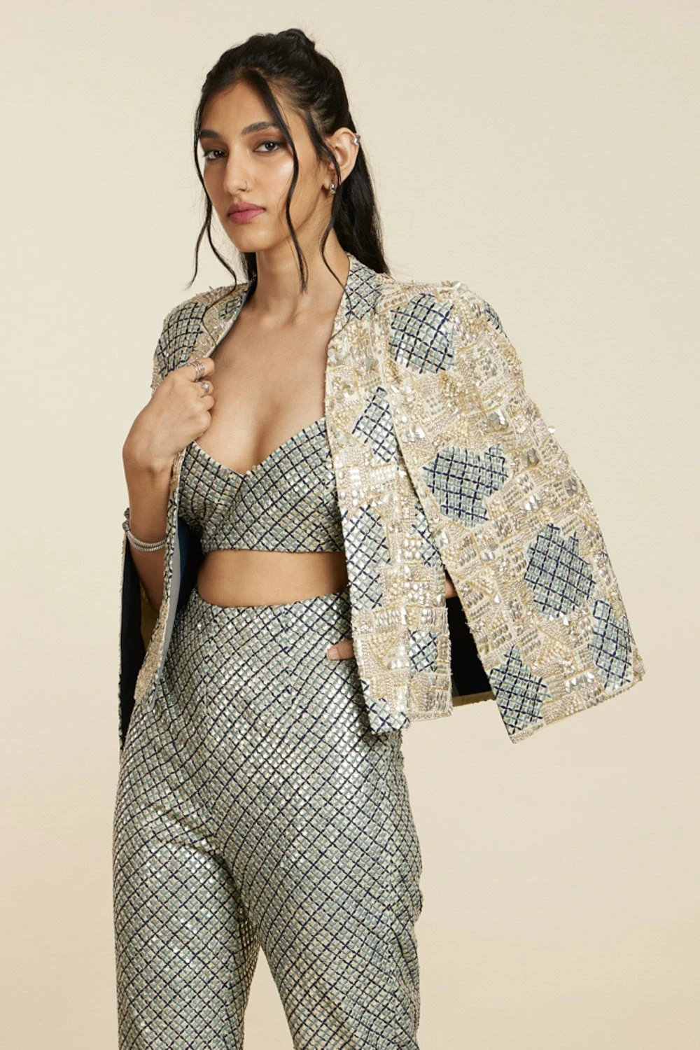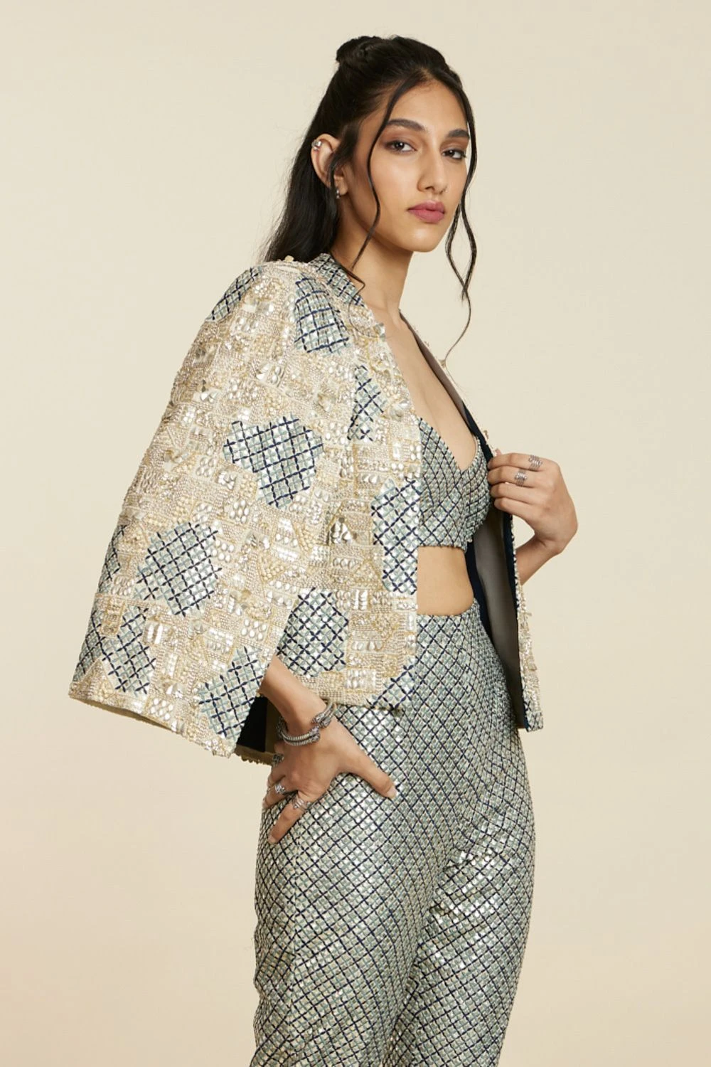 Step into opulent elegance with this embellished jacket set. Setting the stage for an amazing look, this ensemble is a nod to the seamless meticulous craftsmanship with modern refinement.