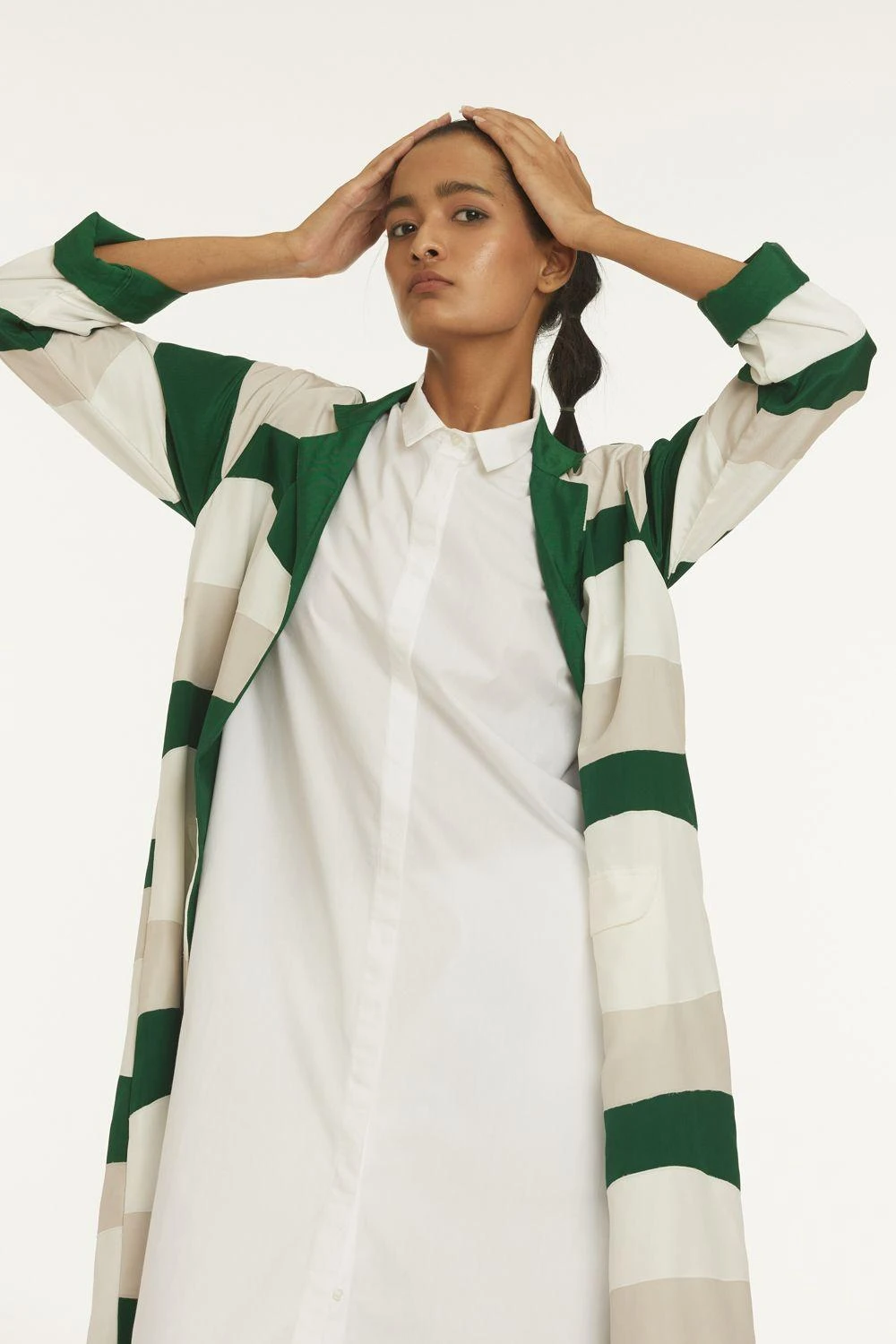 Elevating your basics is the first step toward dressing like a minimalist. Three’s designs fit into the bracket perfectly. A perfect fit for your closet, this jacket features emerald green, ash grey and white panels.