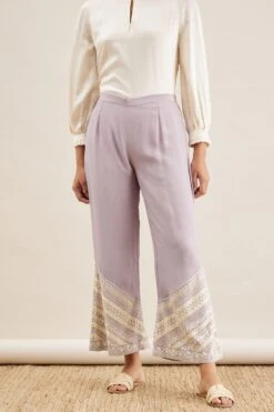 Indulge in the effortless charm of these relaxed fit denim pants. The adjustable waist ensures a perfect fit while the print blocking details and contrast stitching add a touch of uniqueness.